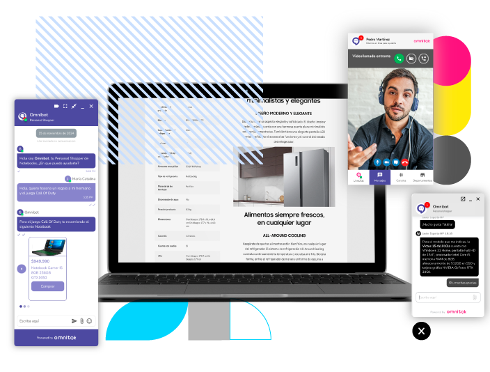 Integrando chat en vivo, videollamadas y un bot de IA conversacional, Omnitok Assistant proporciona asistencia inmediata y relevante, adaptada a las necesidades individuales del cliente y sincronizada con el stock en tiempo real del retail.